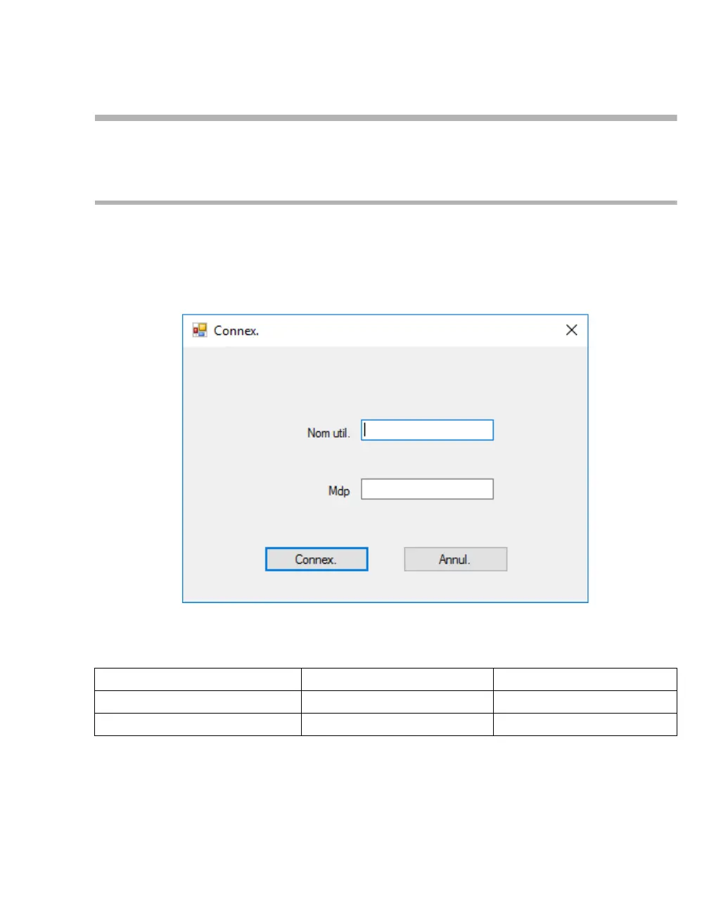 utilisateurs pour la connexion par défaut :
