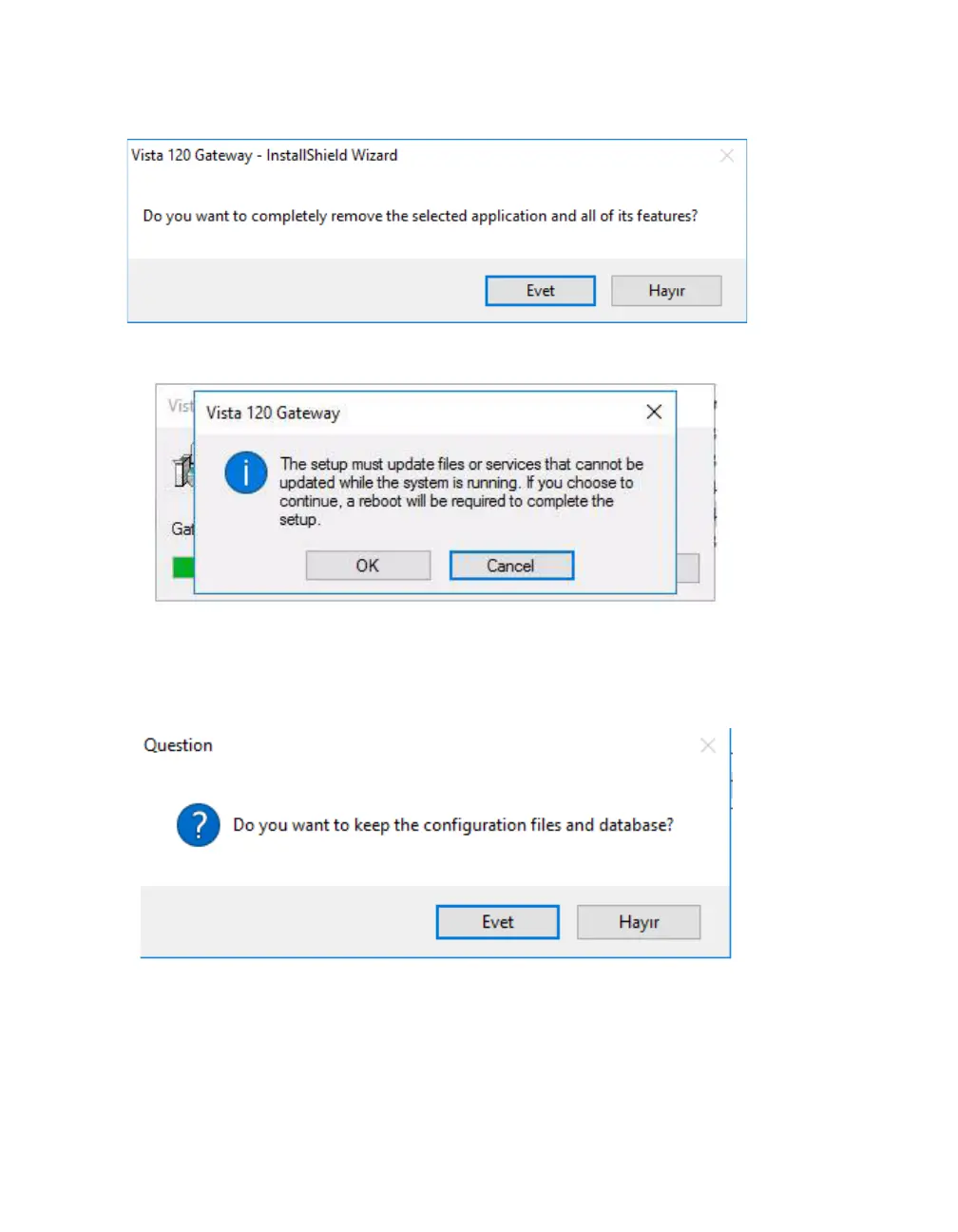 Geçidi yazılımı kaldırılırken yapılandırma dosyaları ve veritabanı, orijinal dosyada korunacaktır;