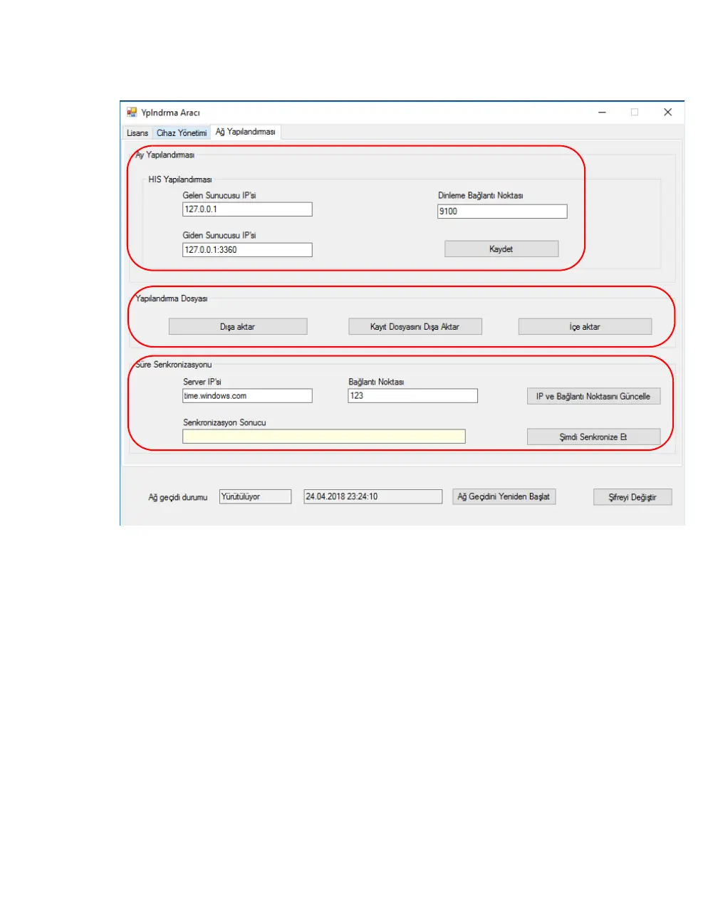 Bağlantı Noktası değiştirilebilir. Bu ayarları kaydetmek için Kaydet düğmesine tıklayın; sistem bir sonraki
