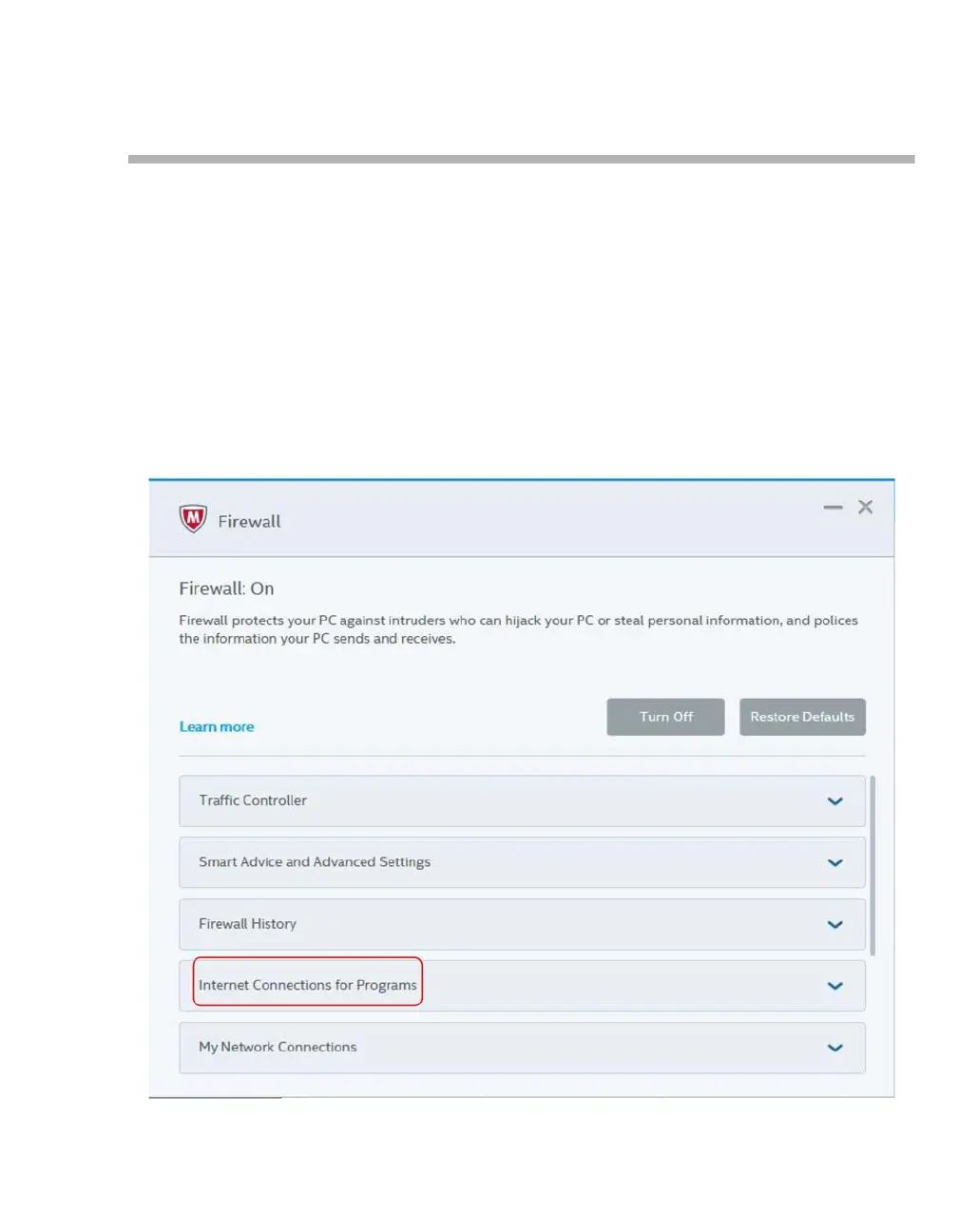 a) After the license file is imported, restart Gateway. Open McAfee, find out and click the Firewall to enter