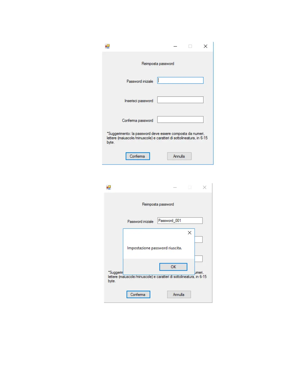 Immettere le seguenti informazioni: Password iniziale e Nuova password e fare clic su Conferma.