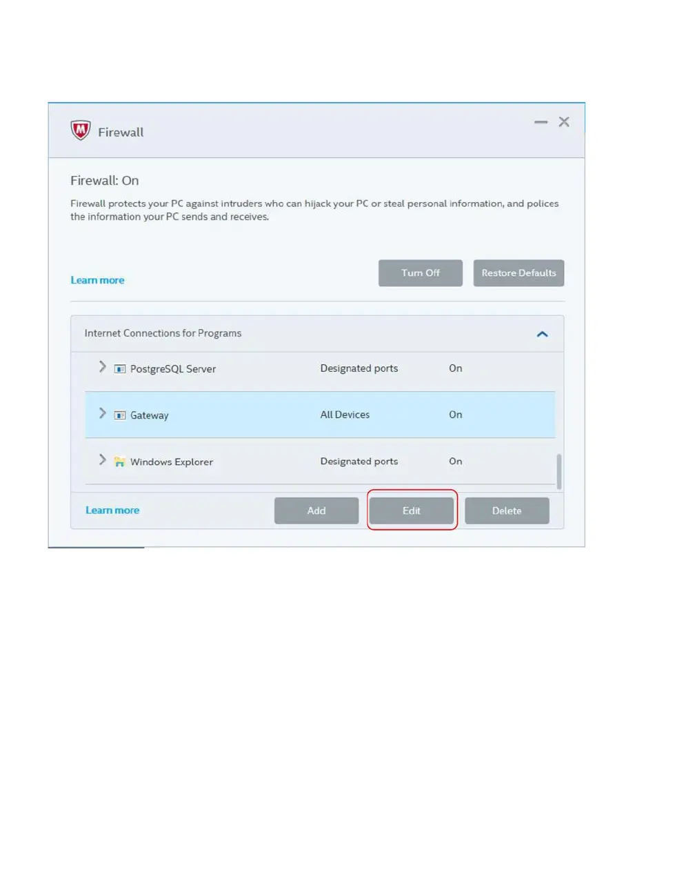 (recommended) (Utilizar puertos designados [recomendada]) del elemento Incoming and Outgoing