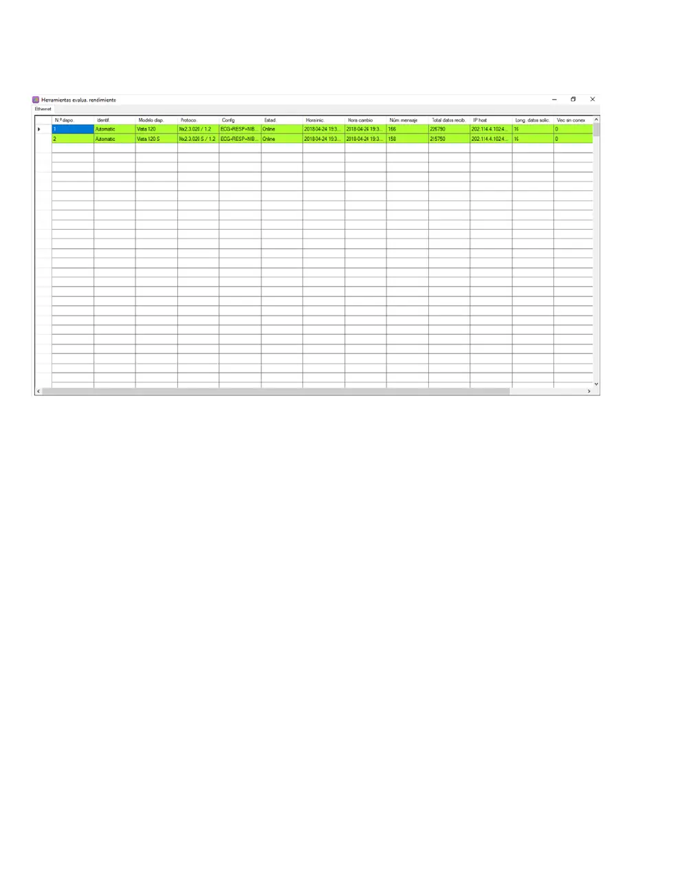 Hora inic.: hora de inicio del estado en línea del dispositivo