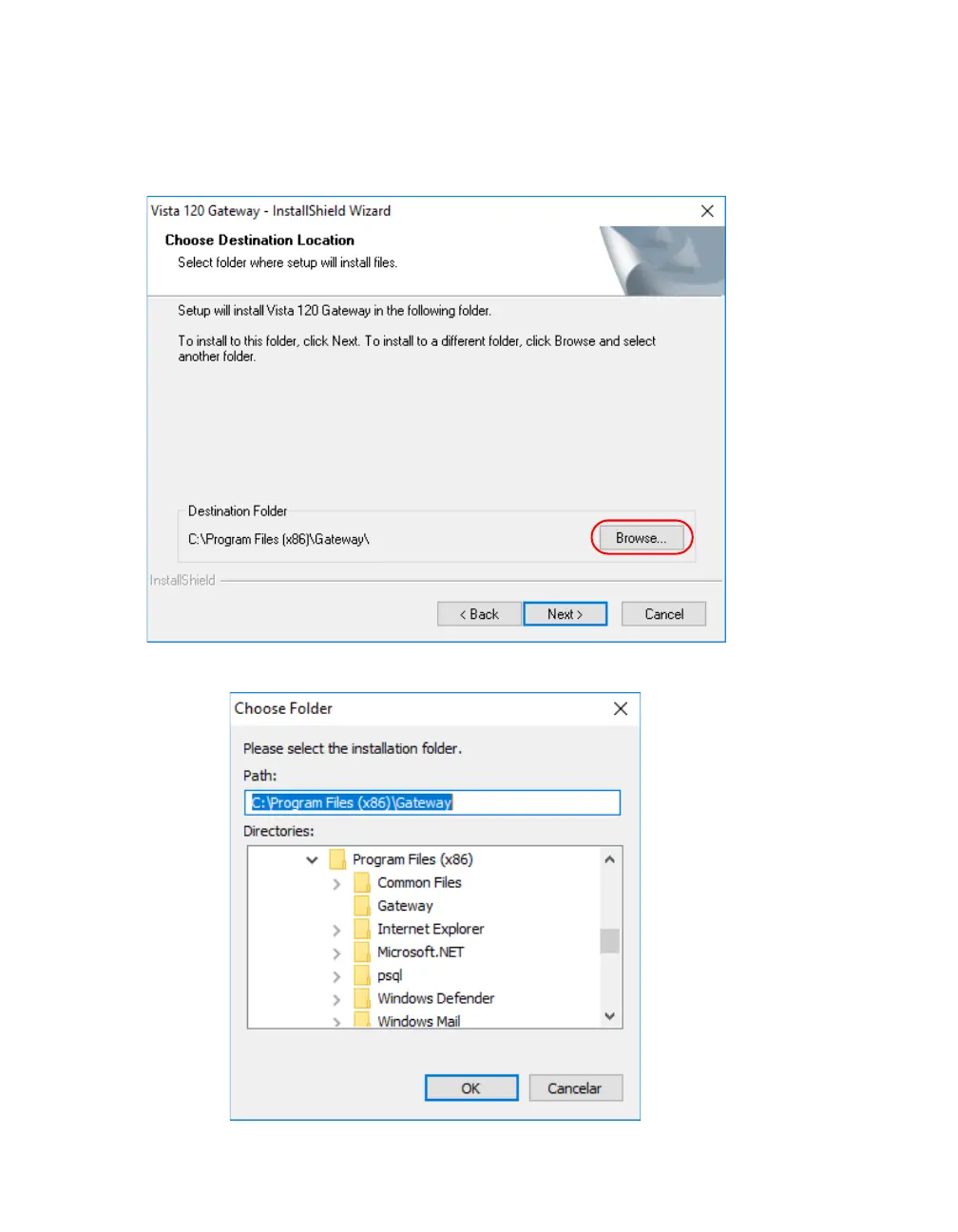 interface. Clique em Browse p\ para alterar o caminho de instalação se tiver de instalar o Gateway