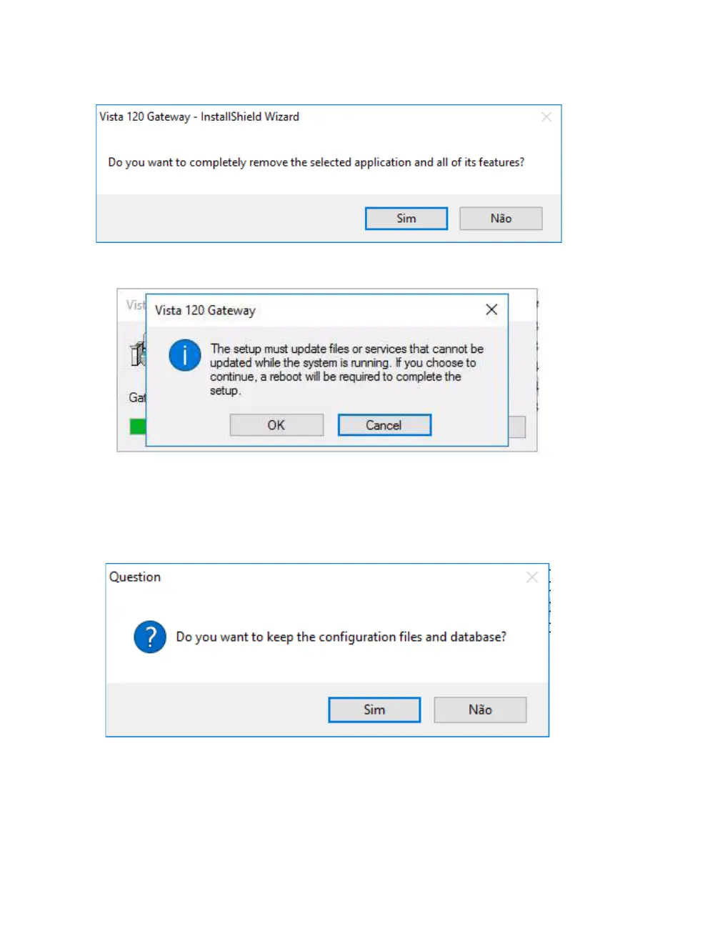 software do Gateway é desinstalado; se desejar eliminar completamente o software, clique em Não e