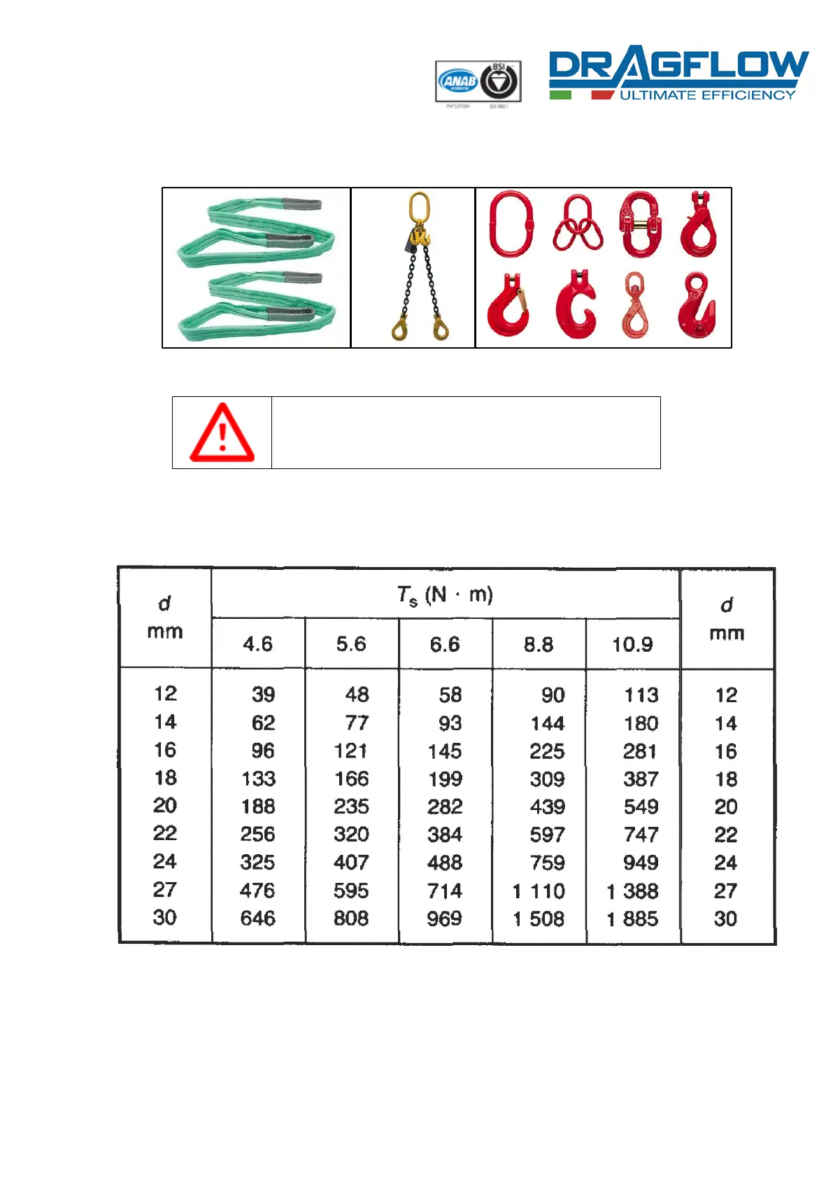 DRAGFLOW EL7.5 - Bolts Tightening Torque