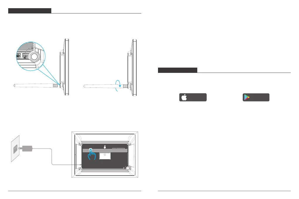Connect the Power Cable to your frame and plug the Power Adapter into the wall socket,