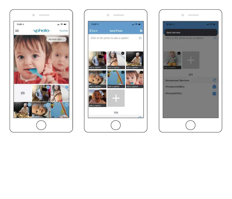 or videos in seconds. You can check them on the frame's photo or video library.