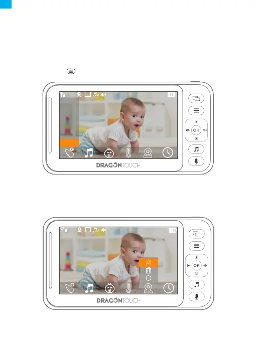 ① Drücken Sie die Menütaste der Babyfoneinheit und wählen Sie das