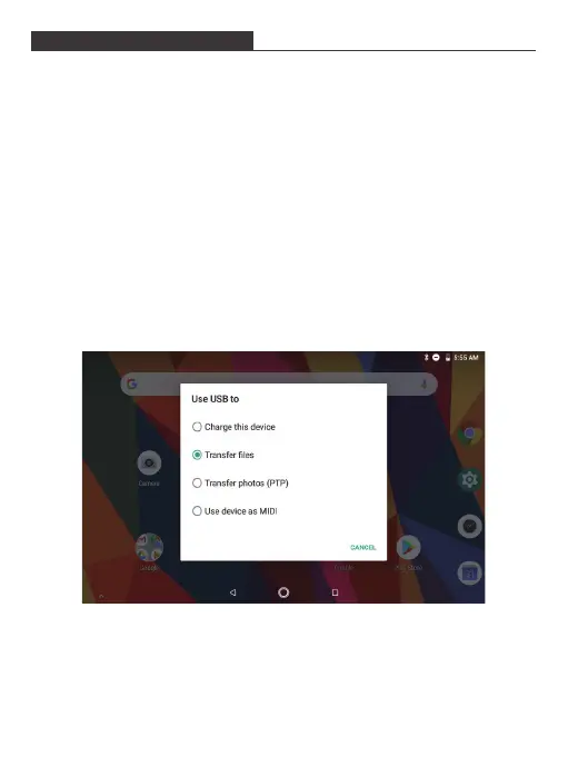 Tap button Transfer files (MTP) to mount the tablet’s built-in storage. When it is mounted,