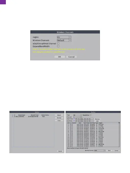Go to the NVR's [Main Menu] → [Main Menu] → [Network] → [Wireless Channels]