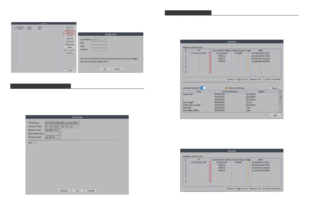 2. Change Password: Go to [Main Menu] → [System] → [Account] to change