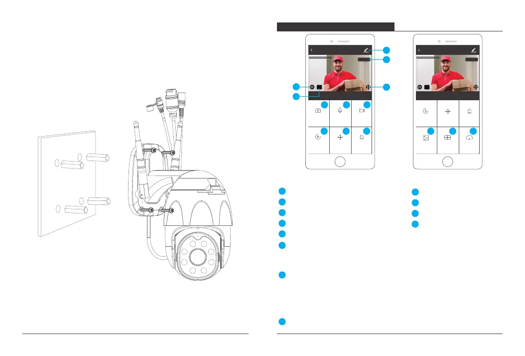 ④ Alignez le trou de vis au bas du support de la caméra avec le trou sur le mur. Fixation