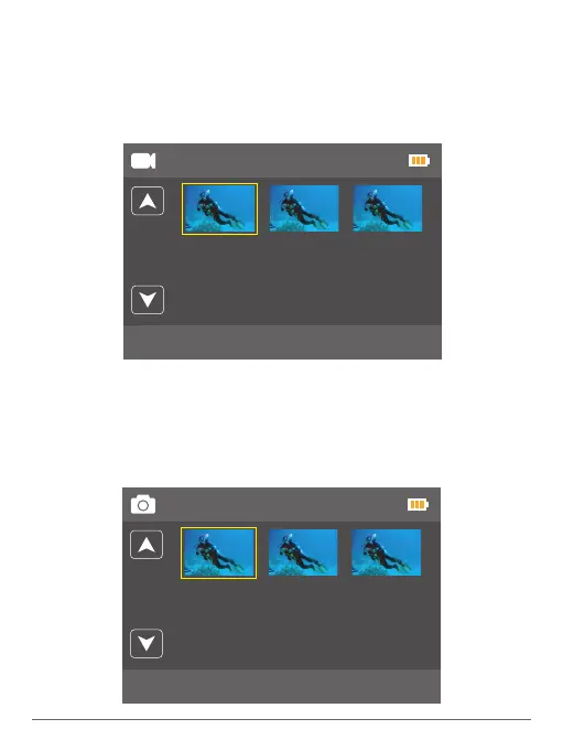 In Video Playback Mode, press the Up / Down button to scroll through the video files.