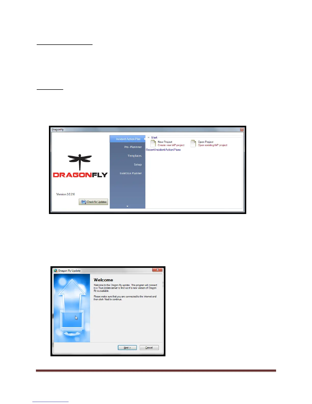 A feature of Dragonfly™ is the ability for the user to check for updates to the program. An