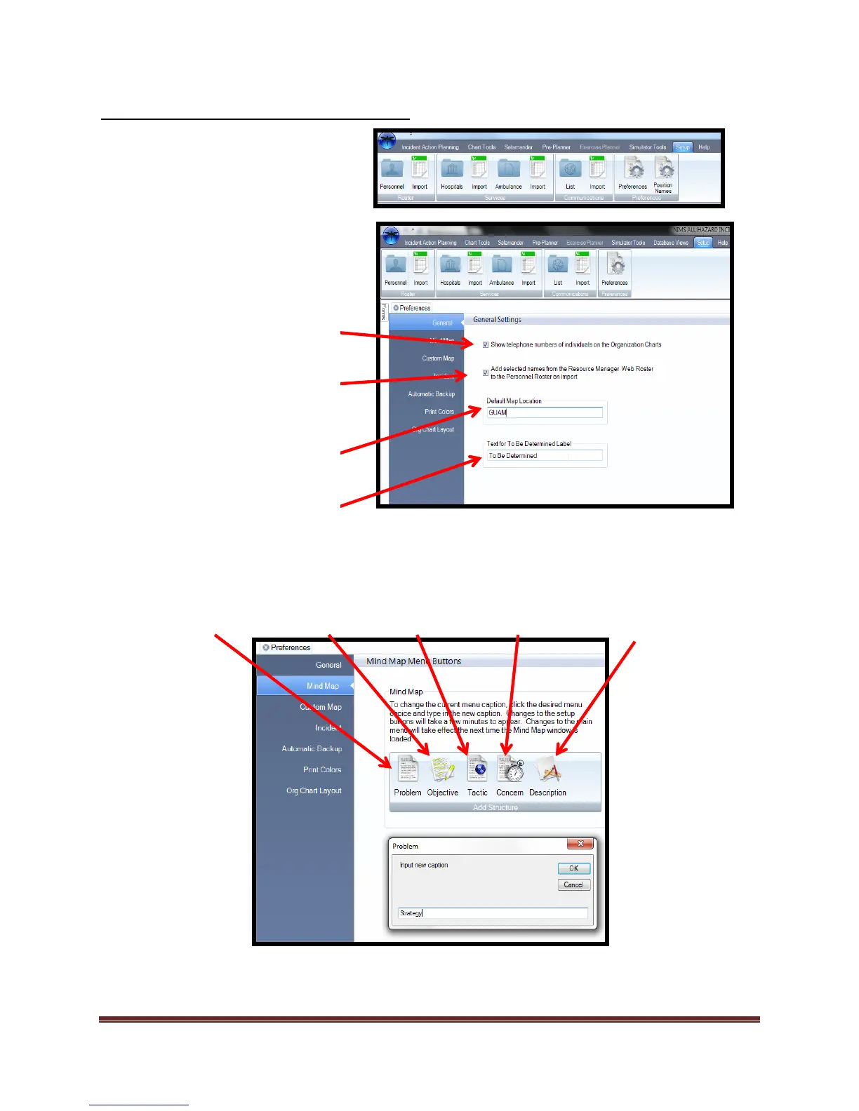 The Mind Map Settings allow the user to adjust the following Icon text statements: