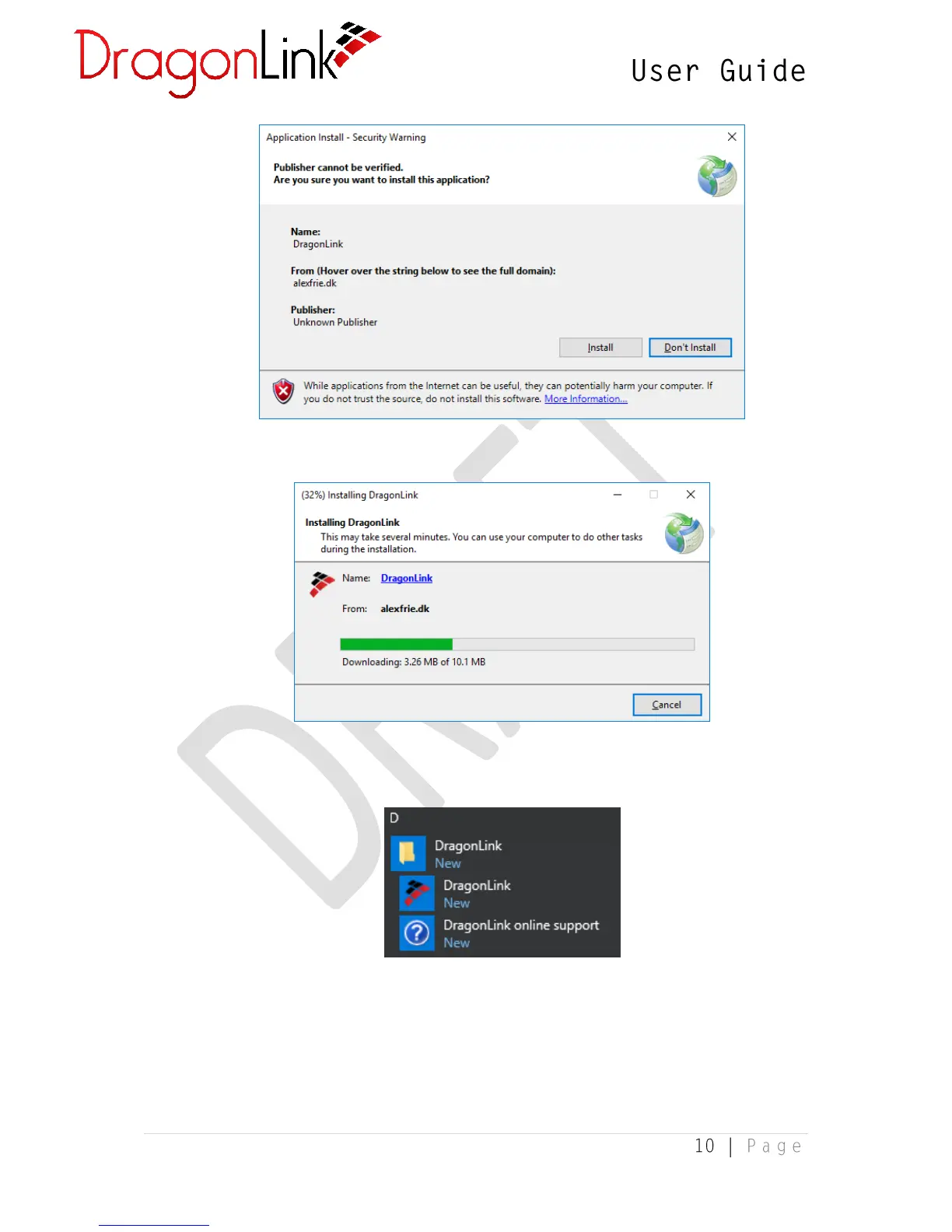 4. Once the installation is complete, the software can be launched from the DragonLink