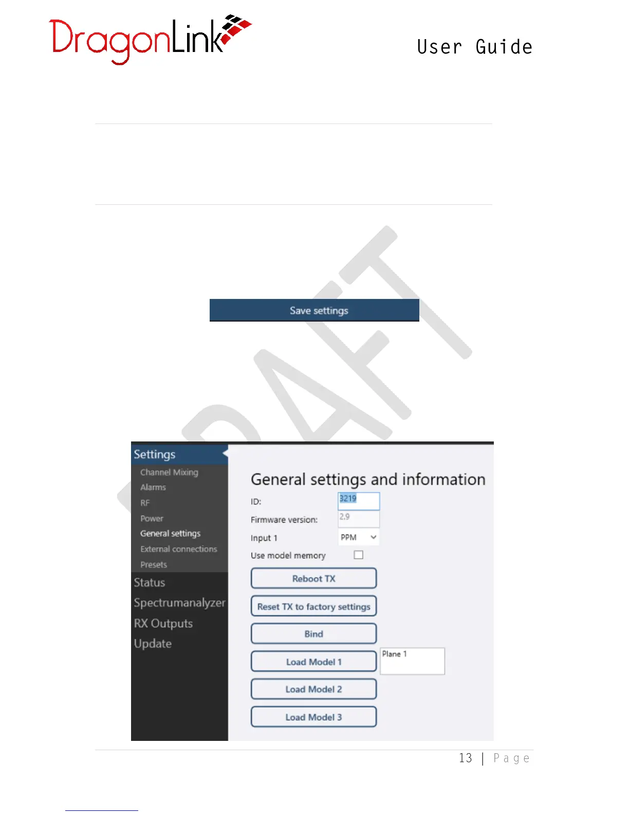 configuration are not lost by clicking Save Settings at the bottom of the DragonLink GUI