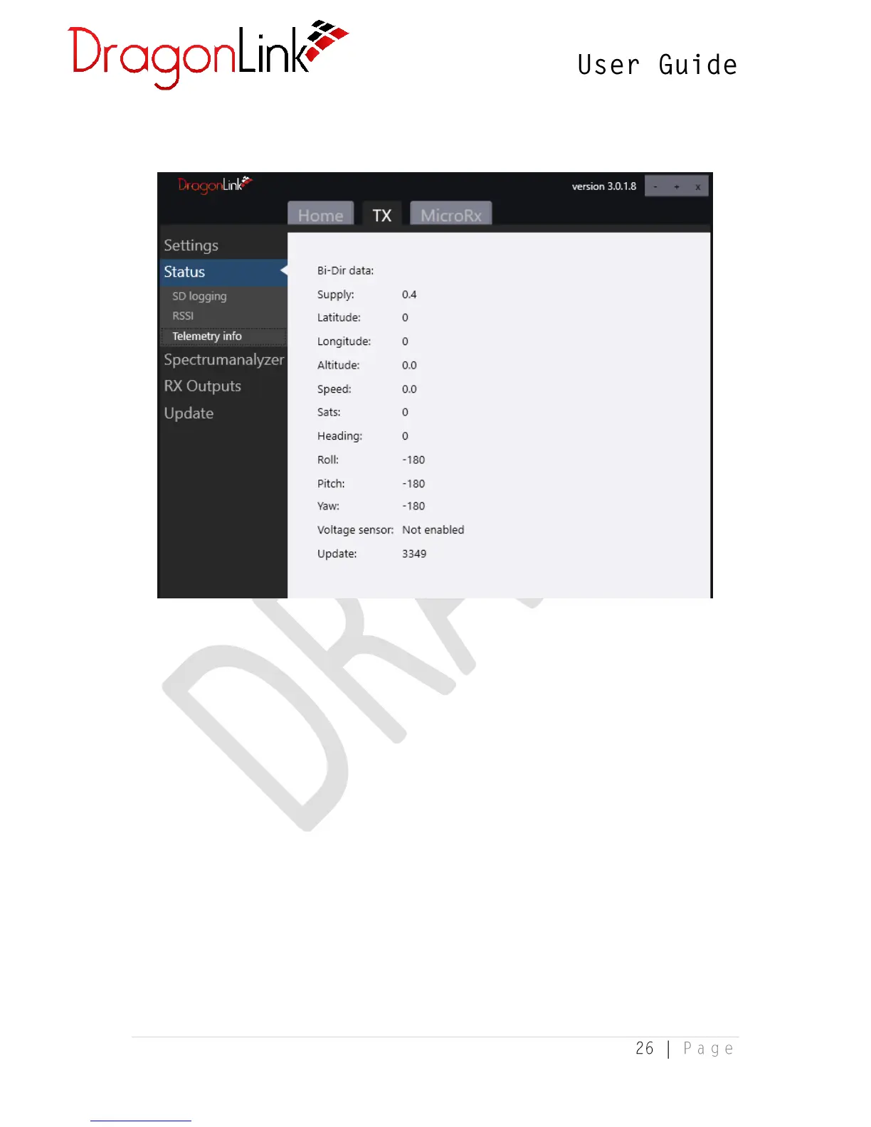 When a compatible GPS, voltage sensor, or OSD are connected to the DragonLink