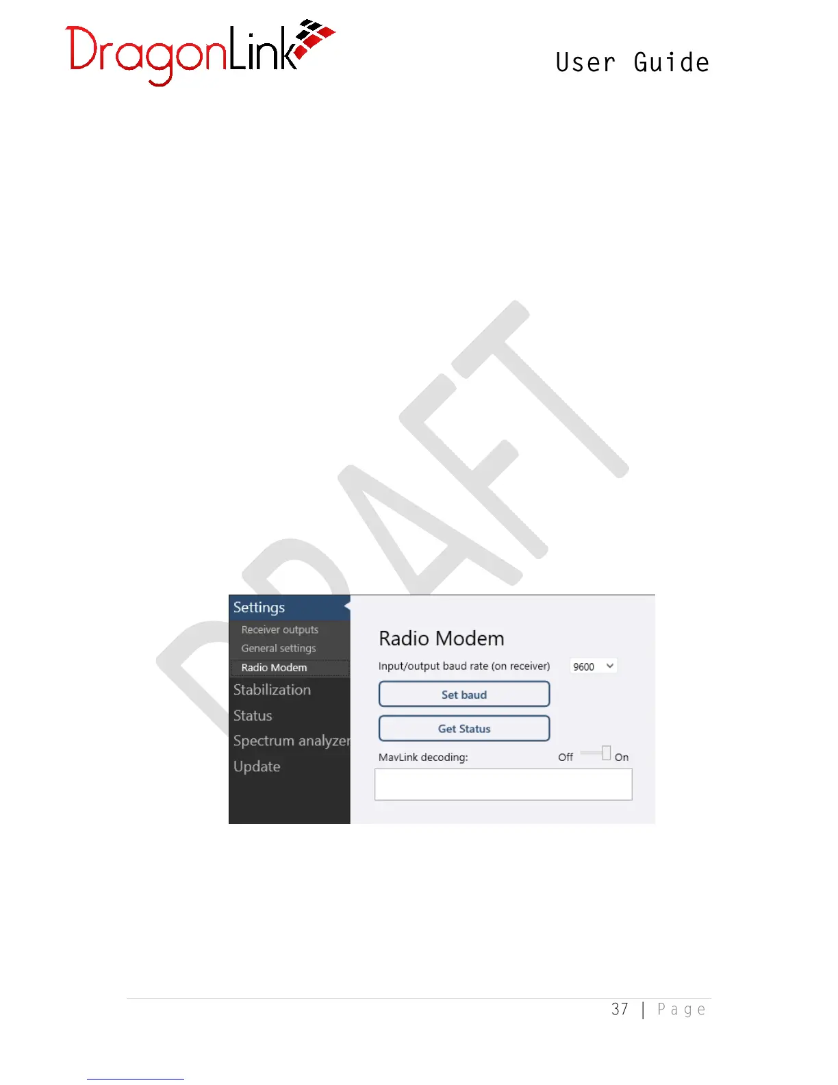 Input / output baud rate (on receiver): Specifies the baud rate for the Receiver to