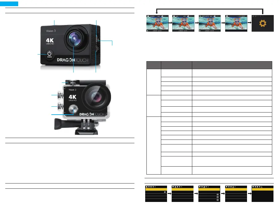 Kamera-Modi und Einstellungen zu schalten. Die Modi erscheinen in der folgenden