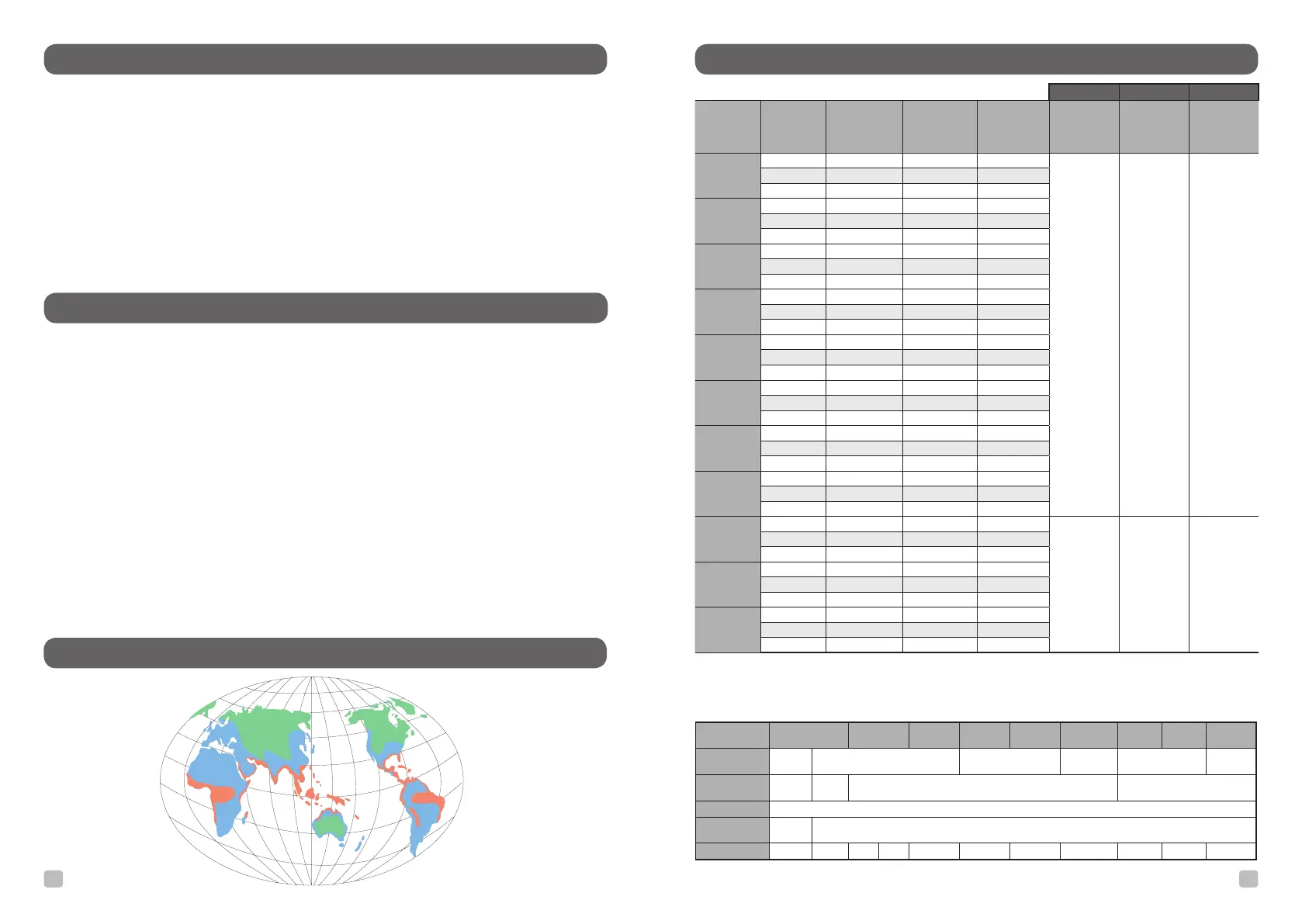 ▶ Red: humid, tropical climate(such as in the coastal regions of South-East Asia, Oceania, Amazon and Congo regions)