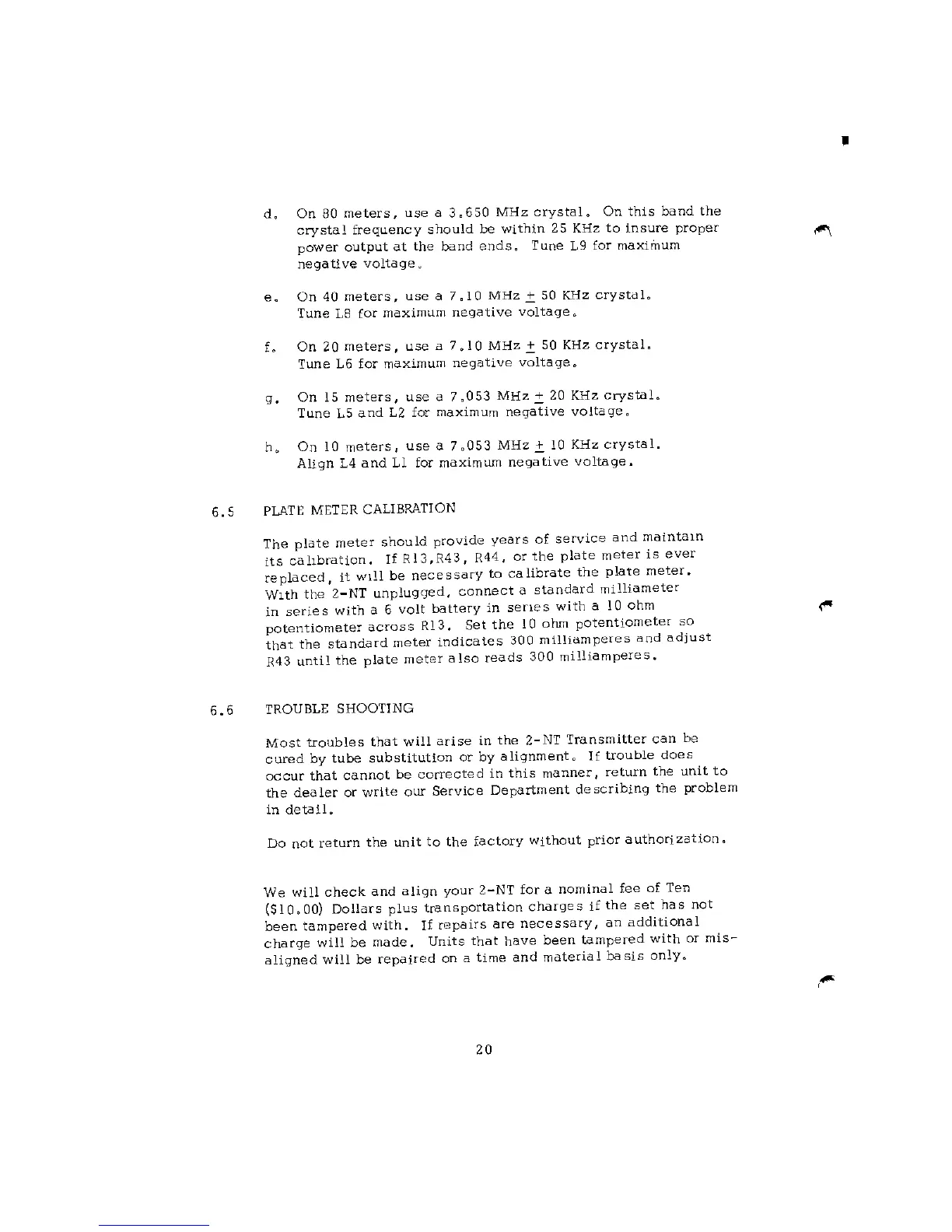 DRAKE 2-nt - PLATE METER CALIBRATION; TROUBLE SHOOTING