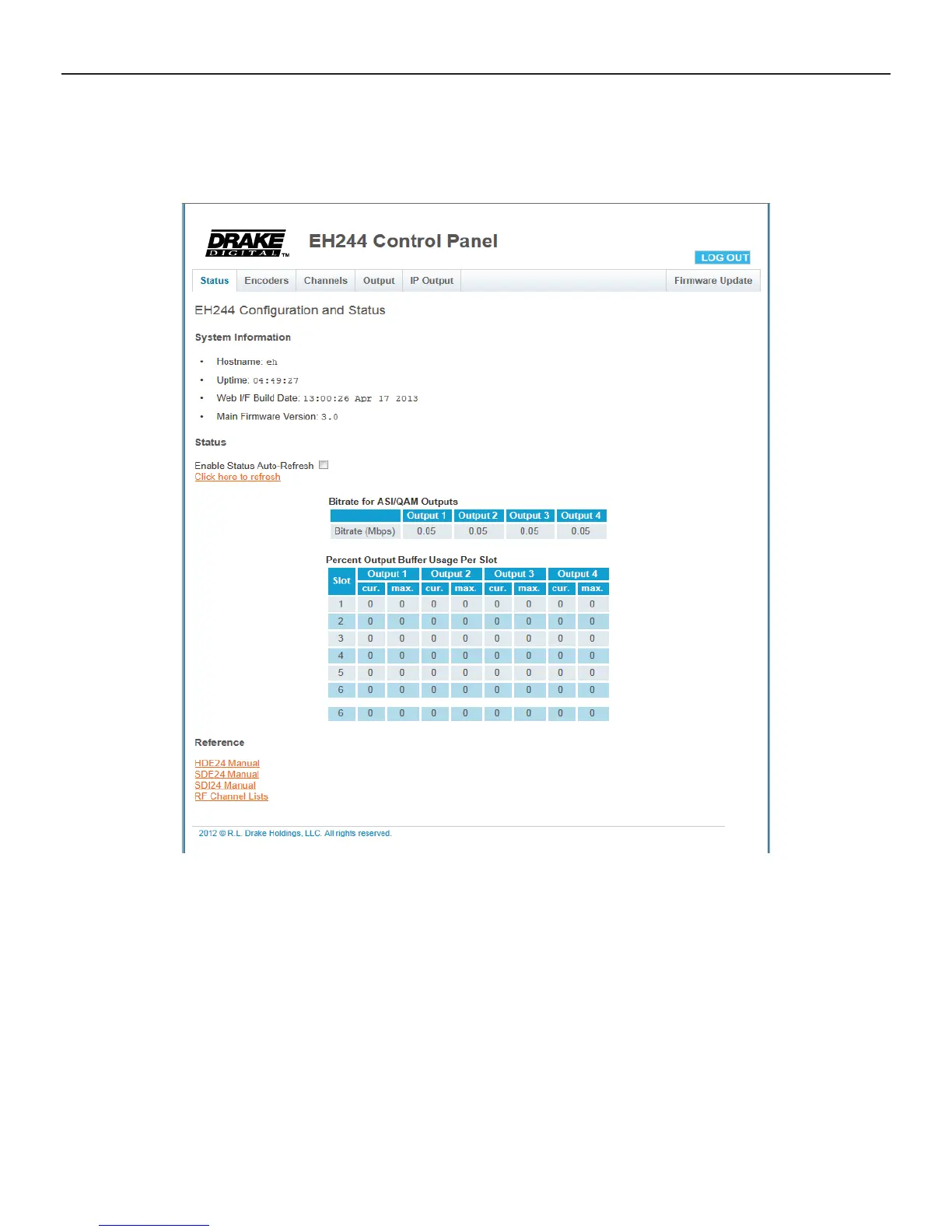 Once you are logged in to the EH244 Web-Server Control Panel, you will be presented with the status