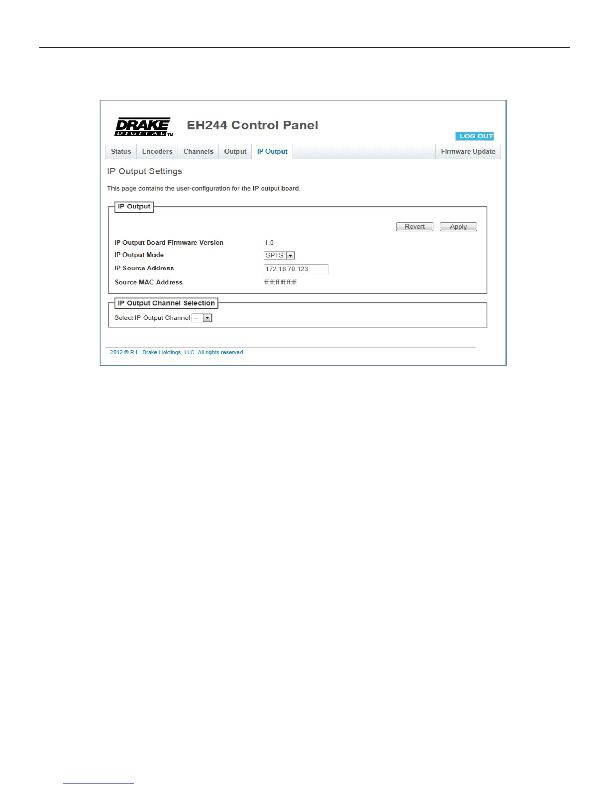 Image: EH244 Web-Server Control Panel, IP OUTPUT Tab