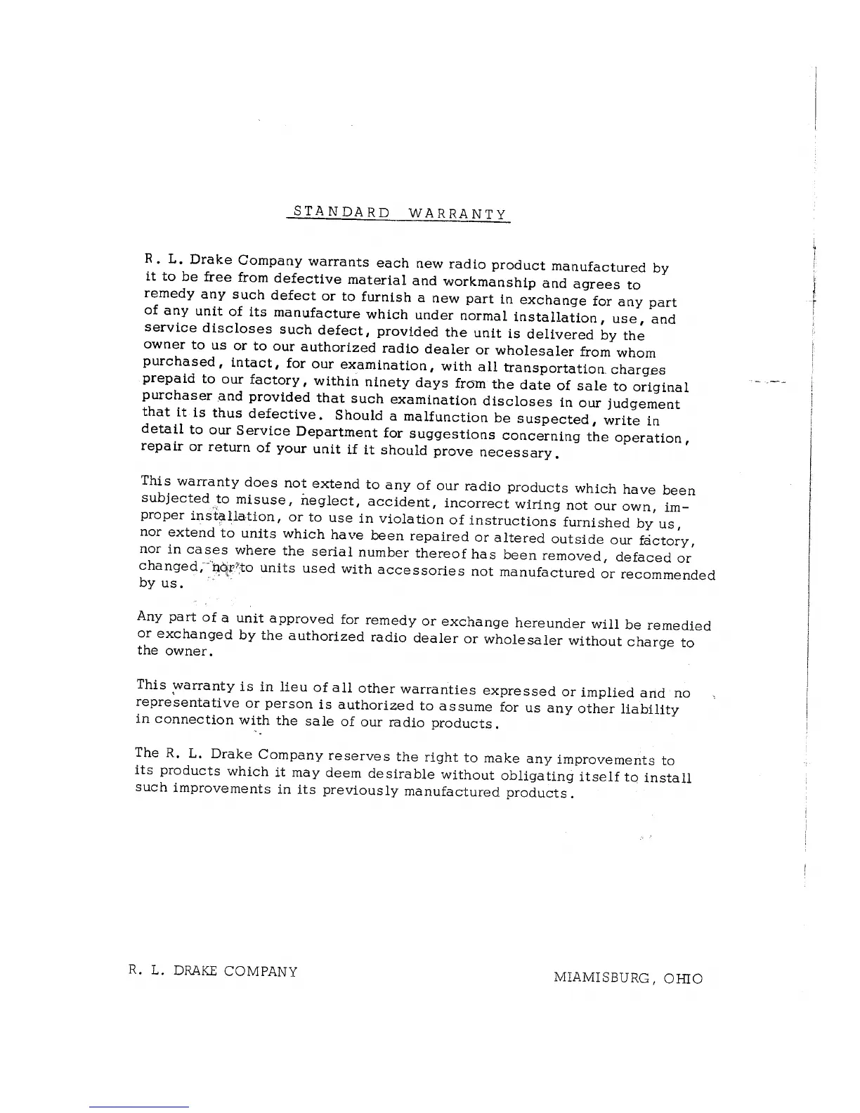DRAKE MN-2000 - Standard Warranty; Warranty Terms and Exclusions