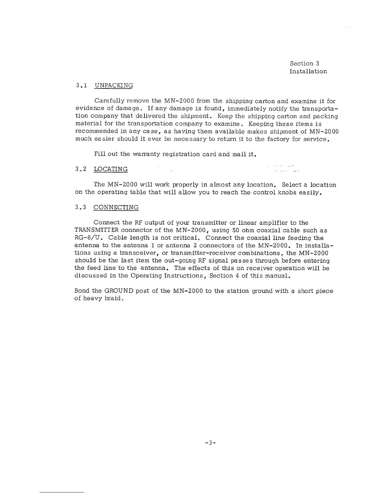 DRAKE MN-2000 - Section 3 Installation; Installation Guide