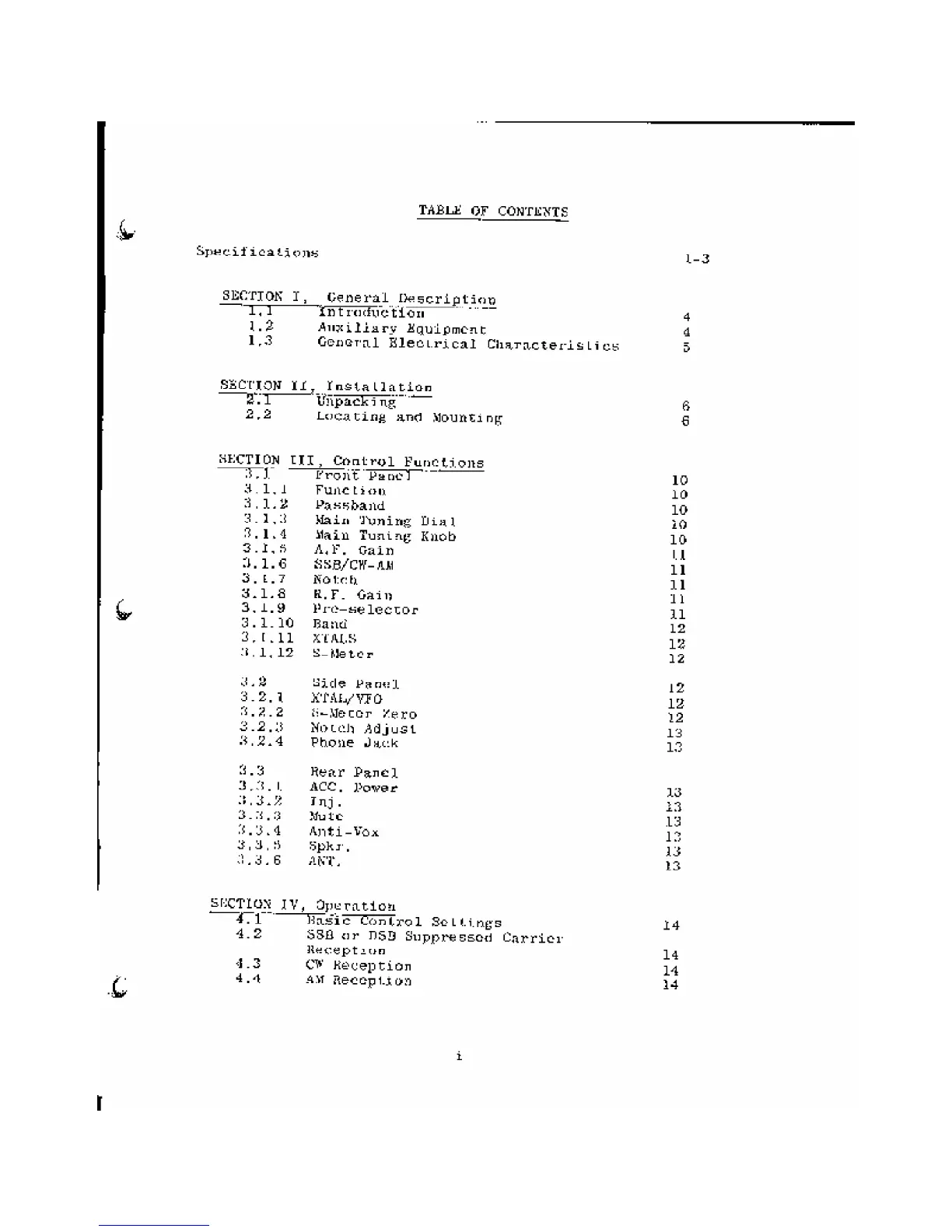 DRAKE R-4B - Table of Contents