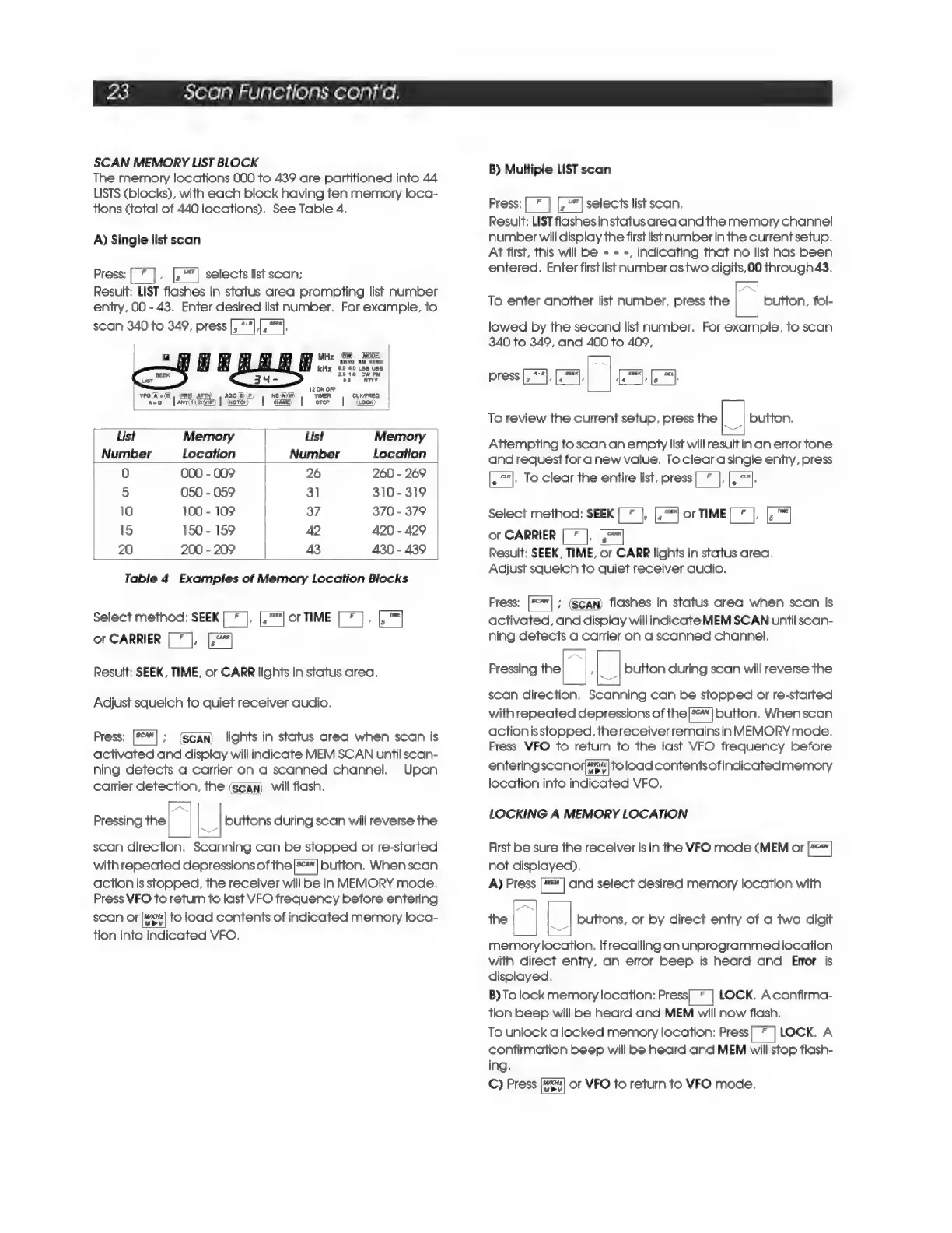 DRAKE R8A - SCAN MEMORY LIST BLOCK; Single list scan; Multiple LIST scan