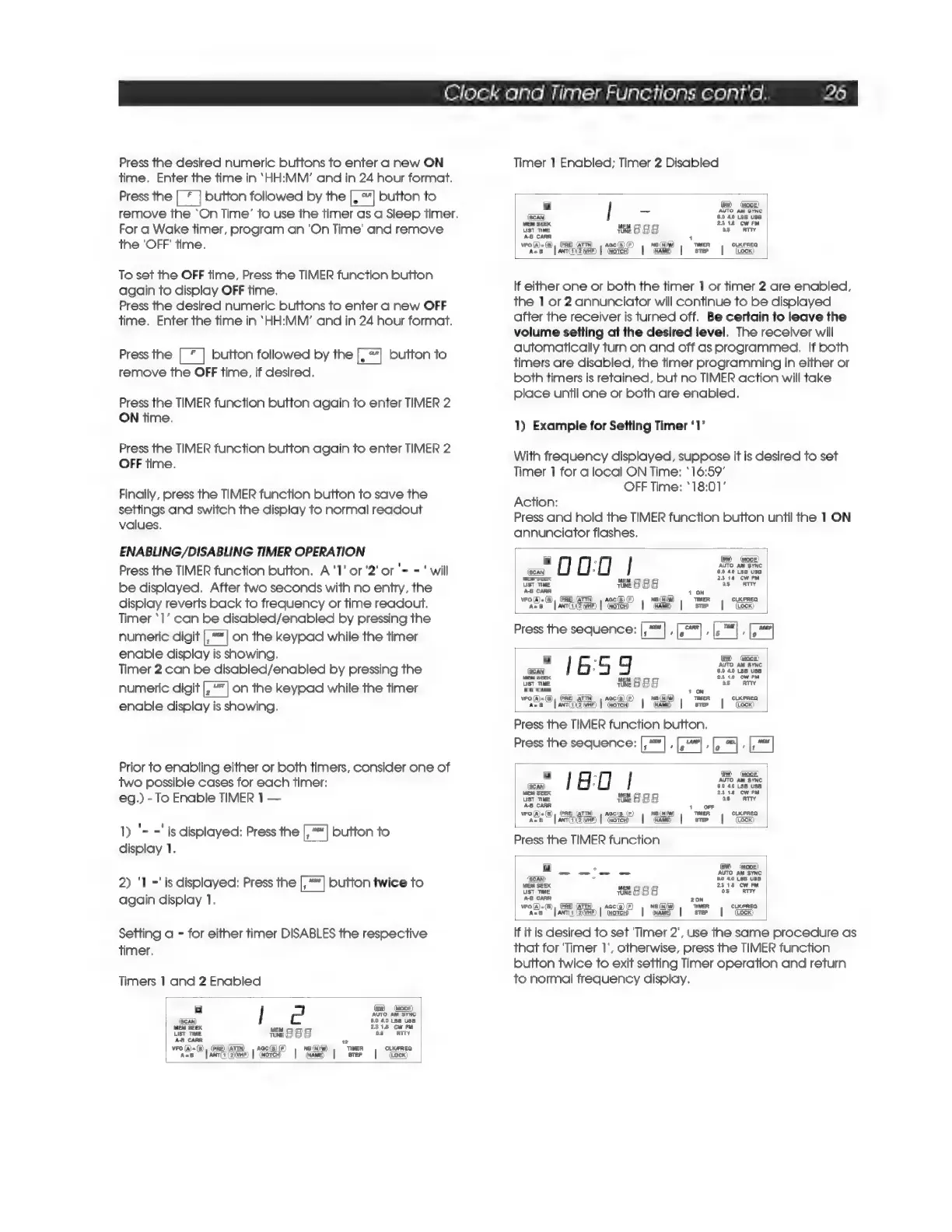DRAKE R8A - Clock and Timer Functions contd; ENABLING;DISABLING TIMER OPERATION; TIMER CONNECTOR INTERFACE