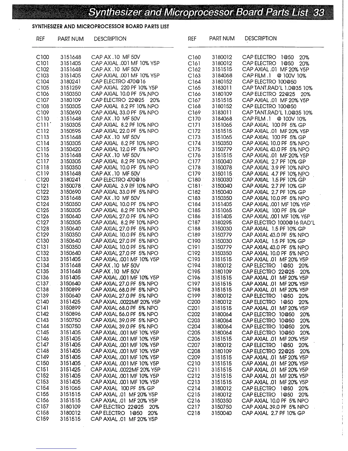 DRAKE R8E - Synthesizer and Microprocessor Board Parts List