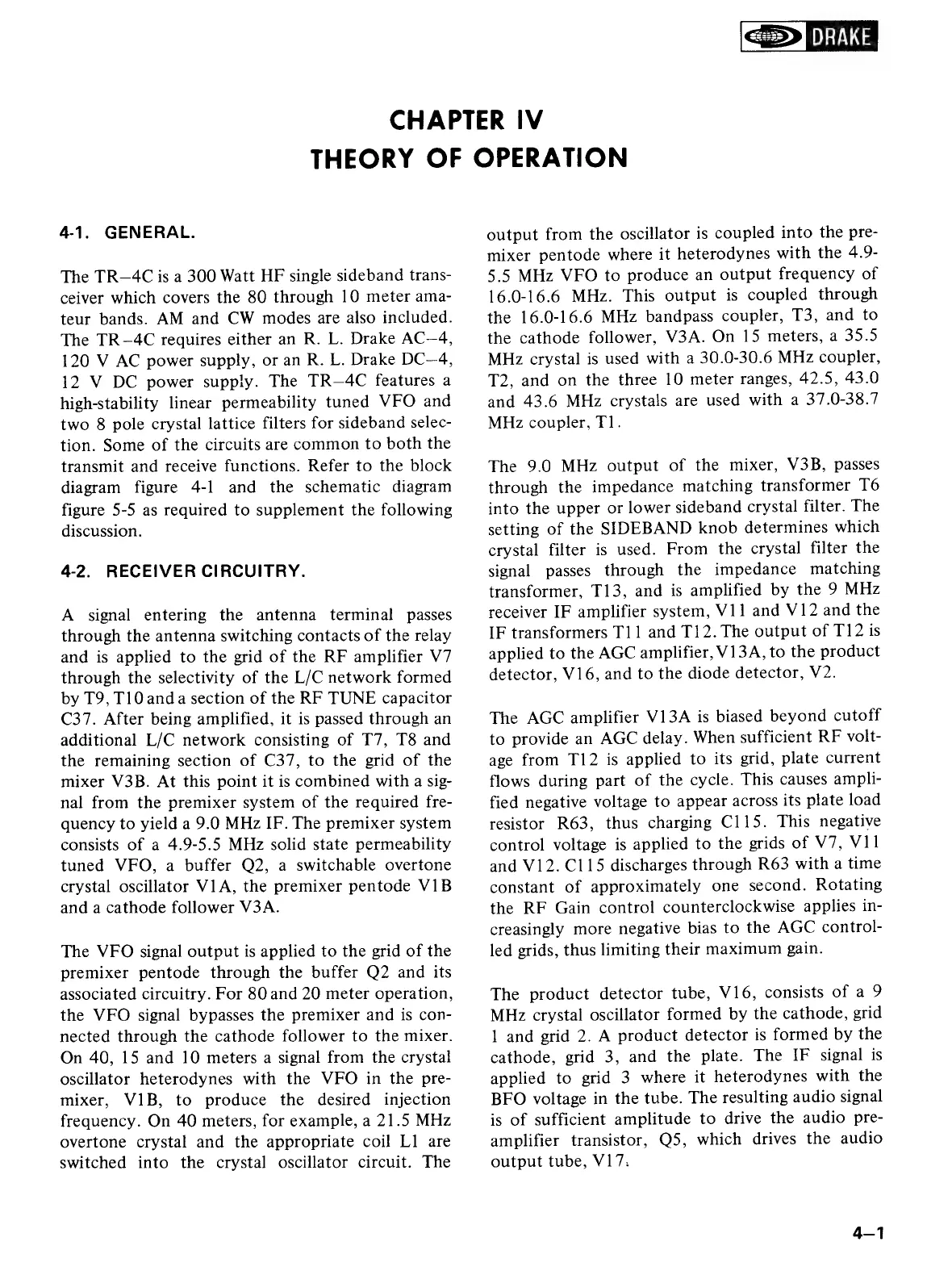 DRAKE TR-4CW - Chapter IV: Theory of Operation; General Theory and Receiver Circuitry