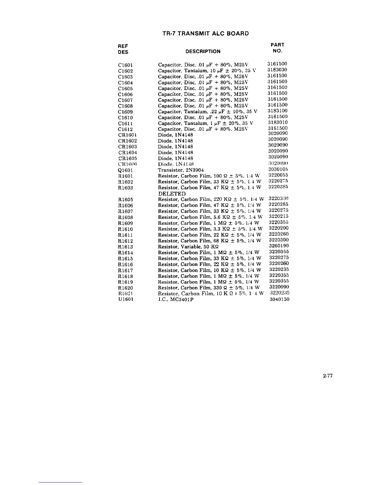 DRAKE TR-7 - Transmit ALC Board Parts List