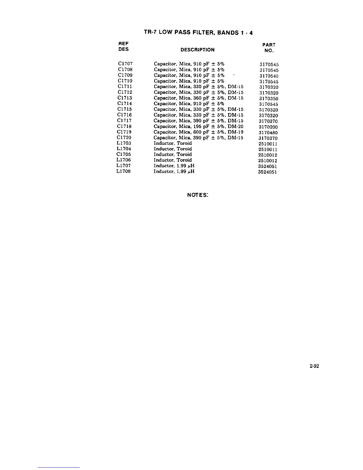 DRAKE TR-7 - TR-7 Low Pass Filter, Bands 1-4 - Parts List
