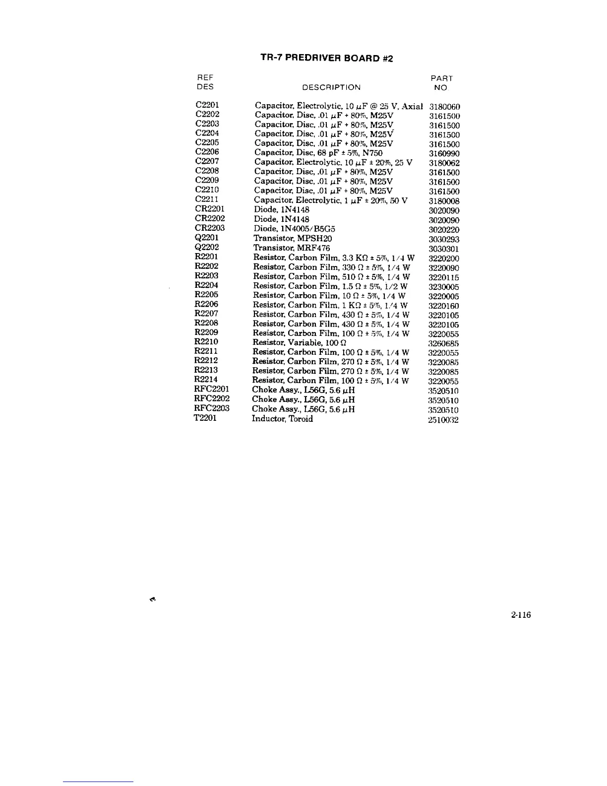 DRAKE TR-7 - Predriver Board #2 Parts List