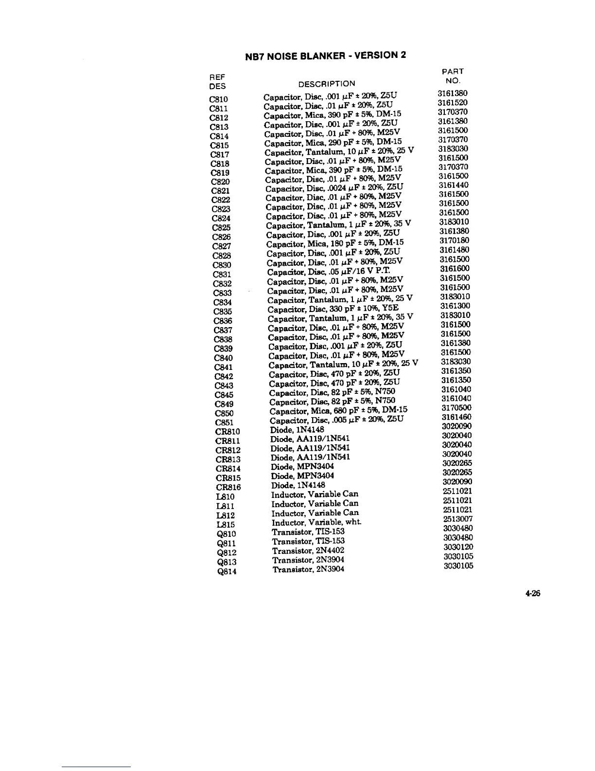 DRAKE TR-7 - NB7 Noise Blanker, Version 2 - Parts List