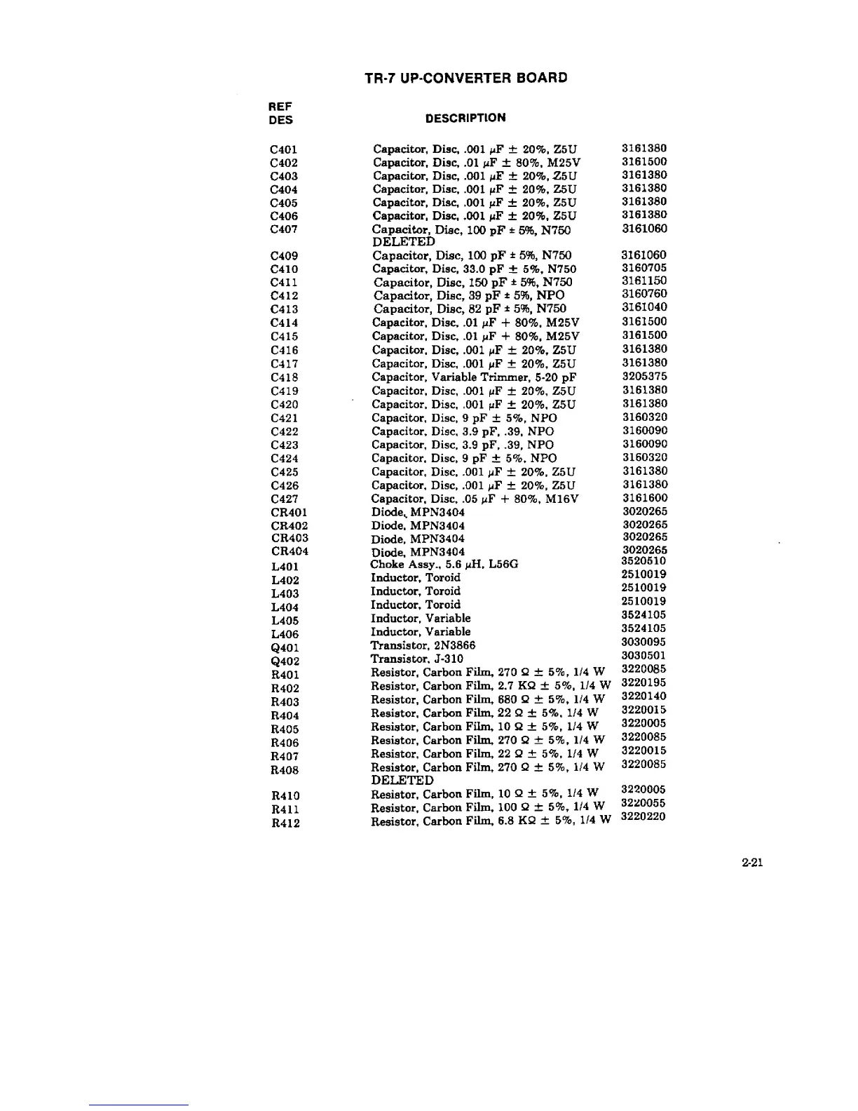 DRAKE TR-7 - TR-7 Up-Converter Board Parts List