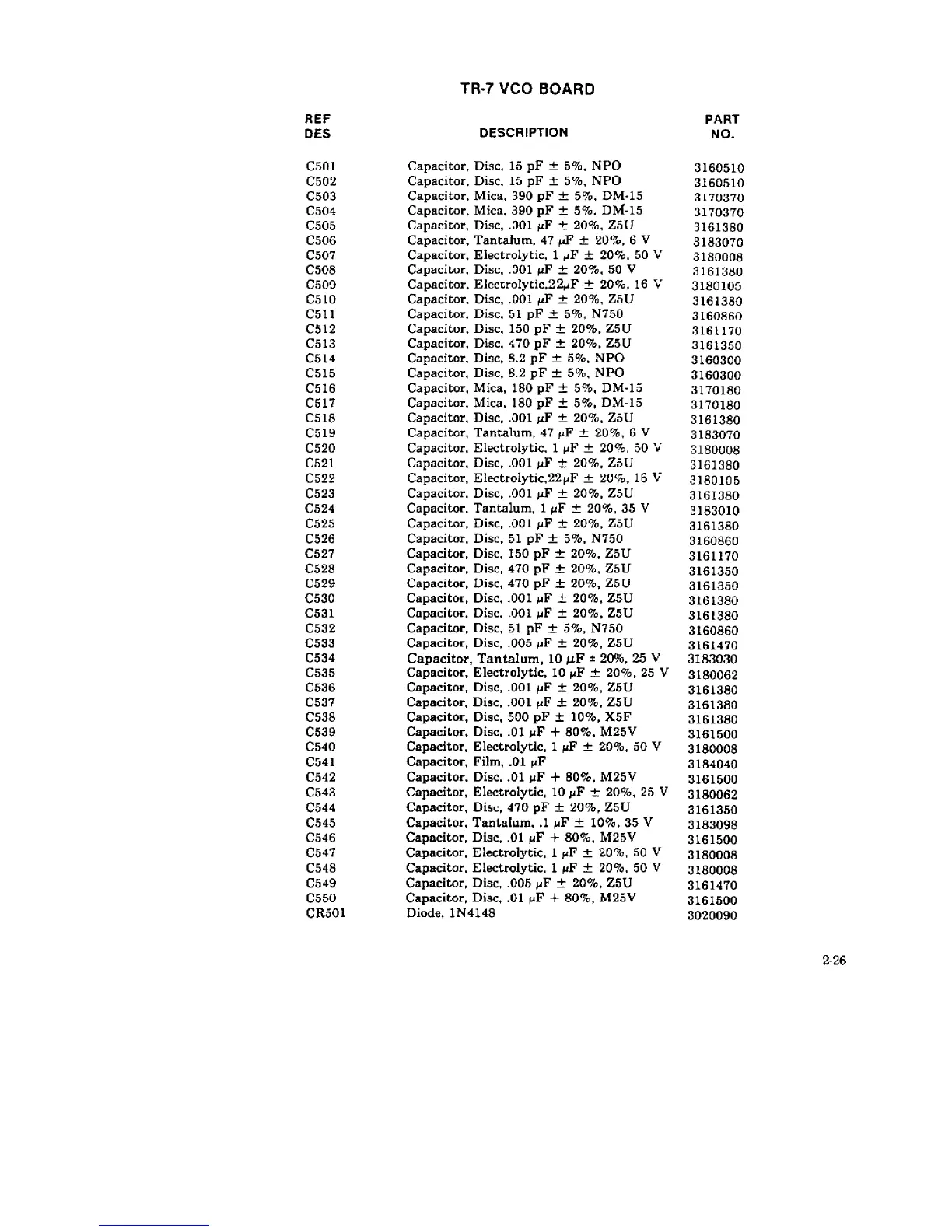DRAKE TR-7 - TR-7 VCO Board Parts List