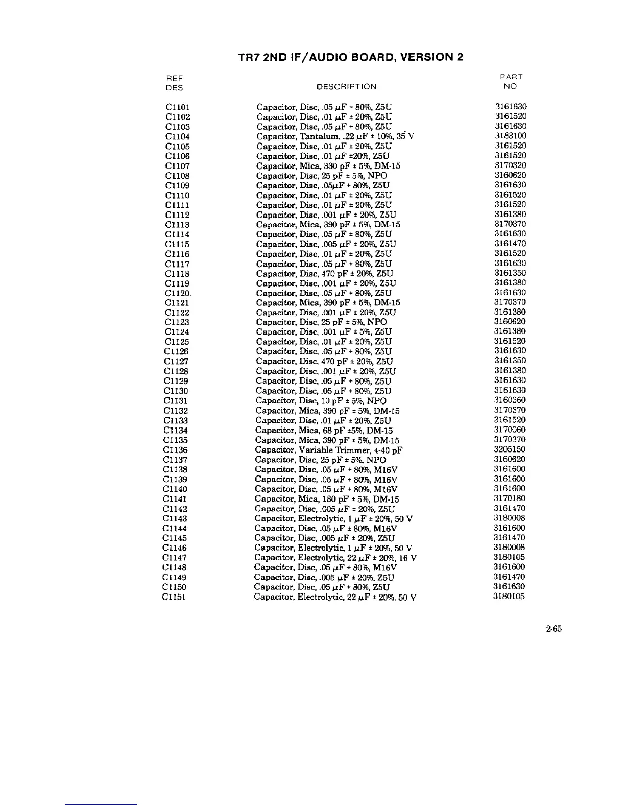 DRAKE TR-7 - 2 Nd If;Audio Board, Version 2 Parts List