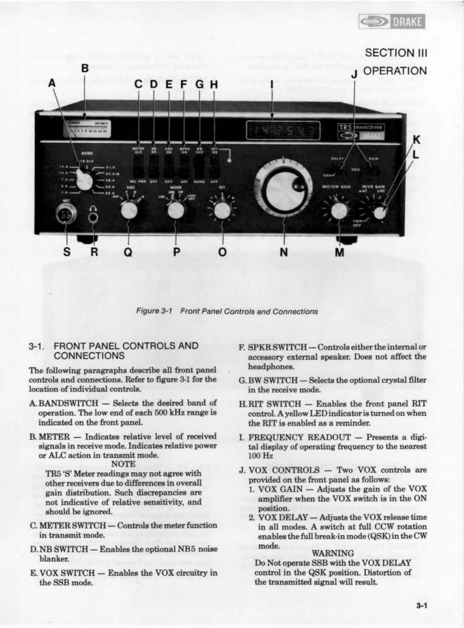 DRAKE TR5 - Operation; Front Panel Controls and Connections