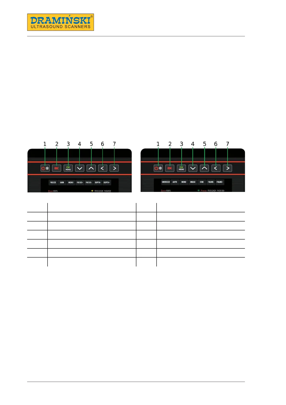 uses of the buttons in scanning and freezing mode. Button functions may be modied using the Personalise