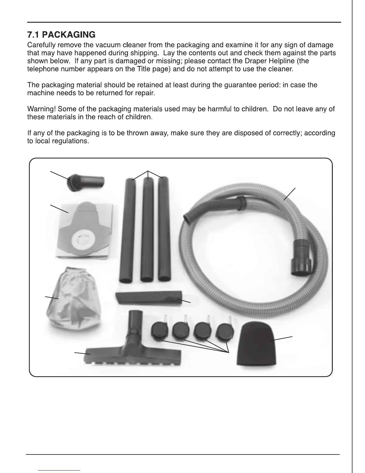 Draper 20514 - 7 Unpacking & Checking; Packaging