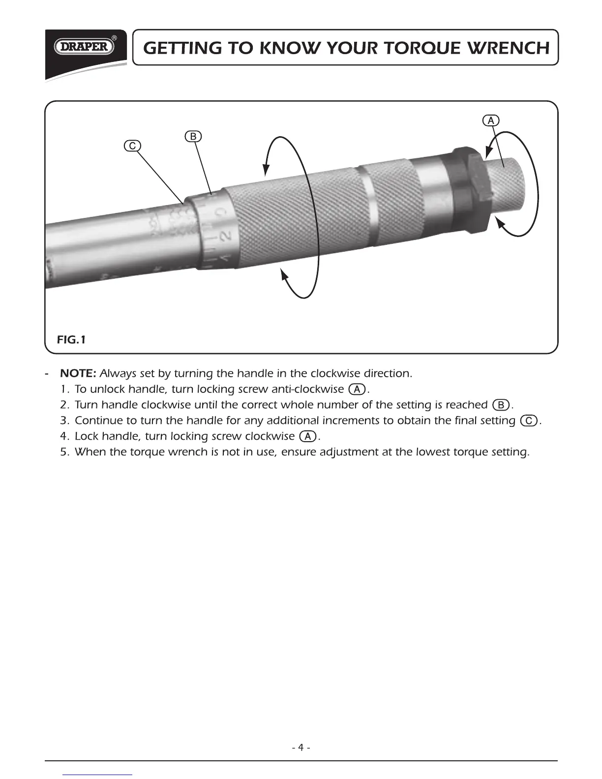 Draper 3001A - GETTING TO KNOW YOUR TORQUE WRENCH