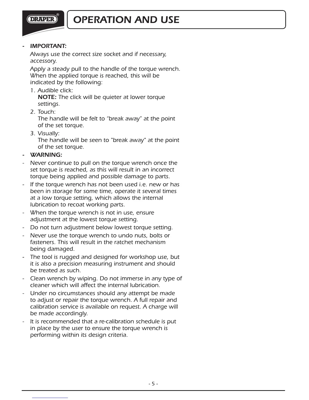Draper 3001A - OPERATION AND USE