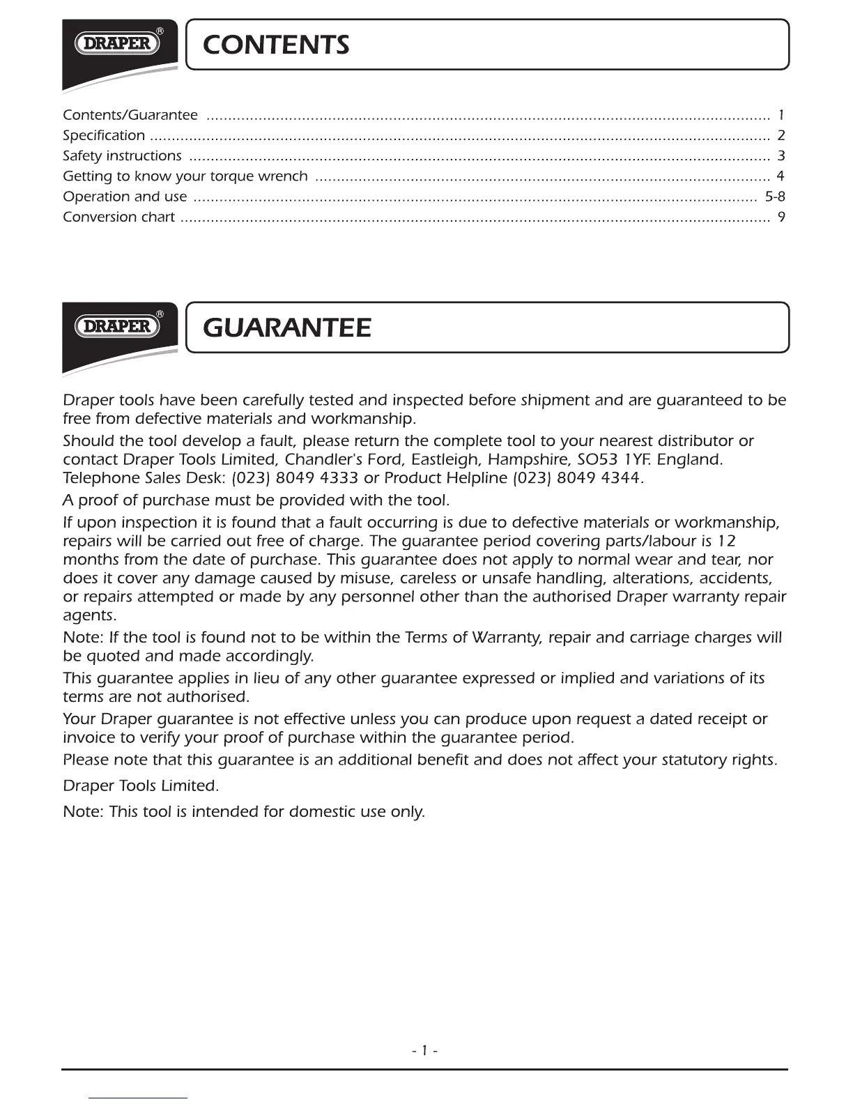 Draper 3004A - Contents