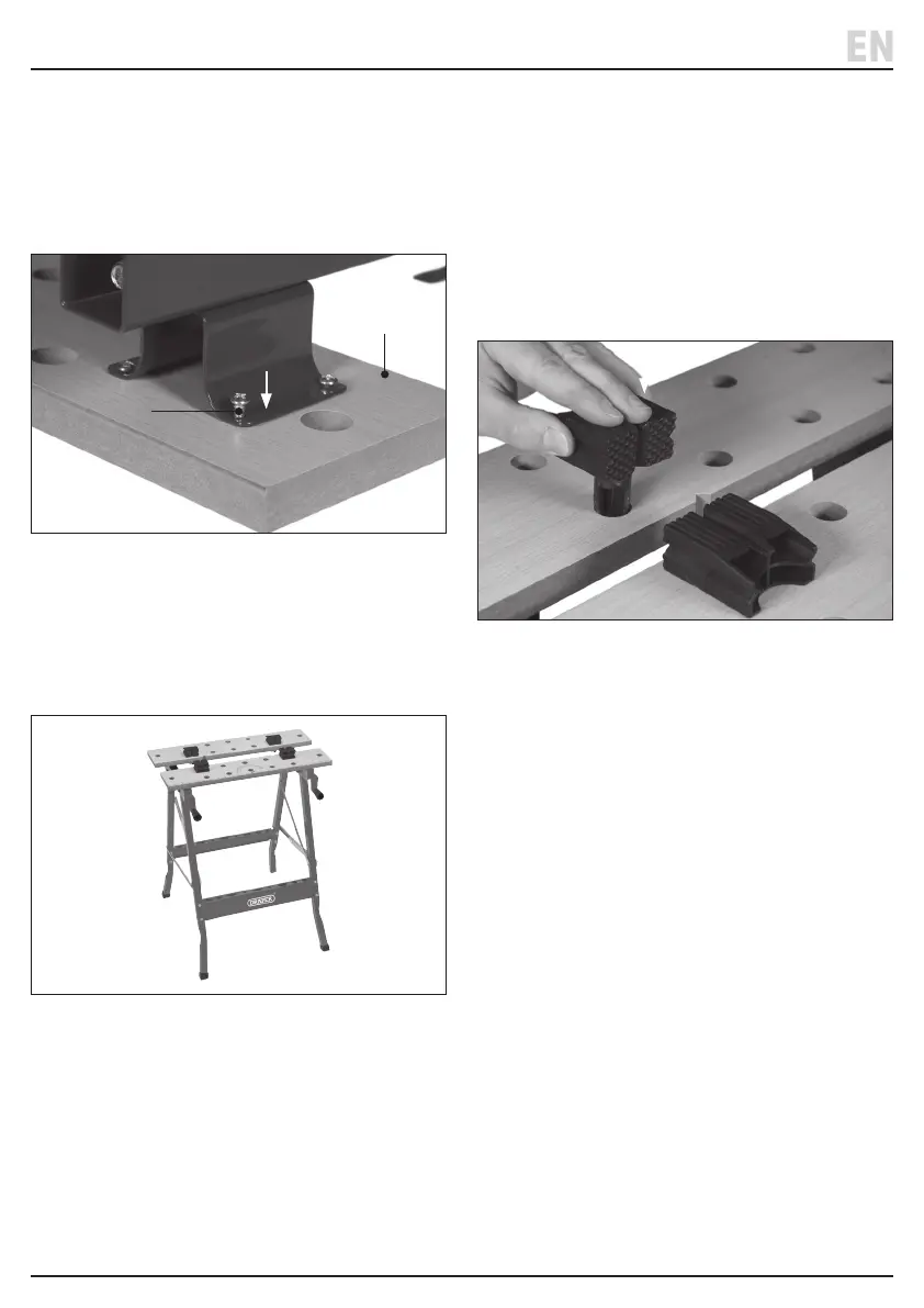 1. Place the rear benchtop (E) onto the rear U-brackets